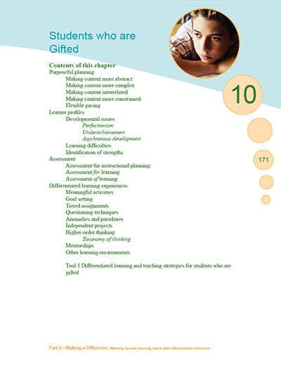 This chapter provides approaches to planning, assessment and differentiated instructional strategies for the gifted learner.