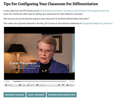 This video features Carol Ann Tomlinson and offers tips for setting up a classroom for more effective instruction.